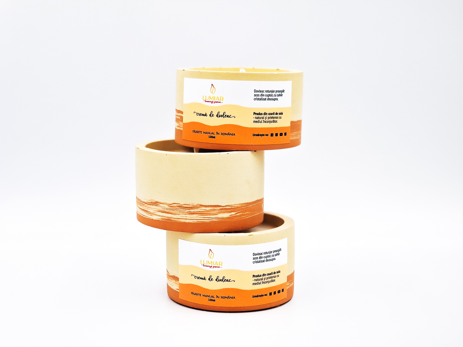 Produs realizat exclusiv manual: de la recipient, până la turnarea cerii parfumate & împachetarea ei.